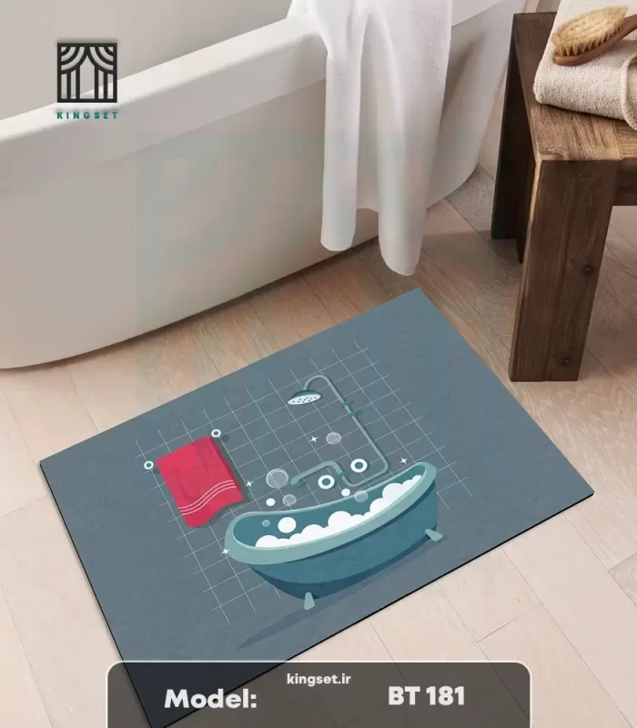 فرشینه و پادری چاپی طراحی شده با تم حمام